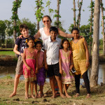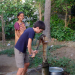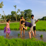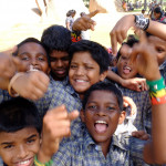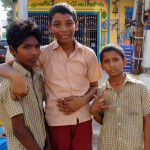 Vecinos del Hotel Indeco Swamimalai, en Kumbakonam. El hotel se ubica en medio de varias villas de campesinos que participan del trabajo del hotel.