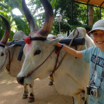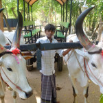 Pau se hizo un nuevo amigo mientras esperaba que le preparasen un zumo de caña de azúcar en Kumbakonam.