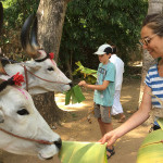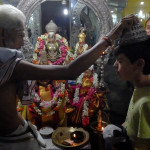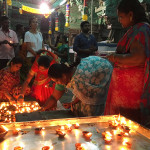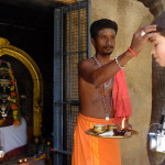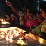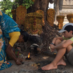 Aprovechando de encender unas velas a los diosos hindúes durante una visita a un templo desconocido en Kumbakonam.