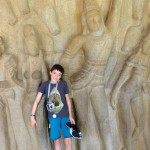 Visitando un conjunto de templos llamados "rathas", carros de tiro esculpidos en roca. Mahabalipuram.