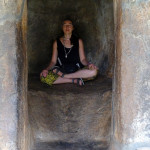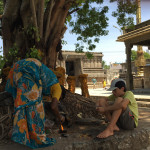 Tomando un descanso durante la visita al Patio Real, donde el rey celebraba audiencias. Palacio Real de Tanjore.