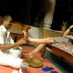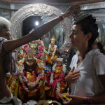 Pau recibe la bendición de una Bramin (sacerdote perteneciente a la casta más alta de India) en un pequeño templo de Mahabalipuram.