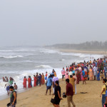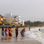 Cada tarde la playa de Mahabalipuram se llena de visitantes que acuden a visitar los templos de este pueblo costero.