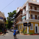 Visitando la comunidad de Auroville, a las afueras de Pondincherry, bajo un sol de justicia (23 de Julio).