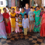 Pau posa con un grupo de peregrinos que nos encontramos visitando el templo Sri Ranganathaswamy de Trichy.