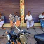 Fieles a su cultura, que fomenta los lazos personales en la comunidad, estos vecinos charlan en la entrada de la casa de uno de ellos. Kumbakonam.