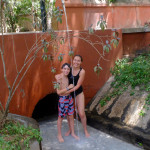 Pau y Mónica visitando un conjunto de templos llamados "rathas", carros de tiro esculpidos en roca. Mahabalipuram.
