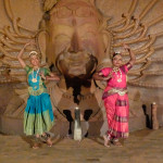 Pau y Mónica posan frente a una representación de Laxmi, diosa hindú de la riqueza y prosperidad, y esposa del dios Vishnu.