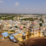Trichy y su estanque de Teppakulam vistos desde la colina de 83 metros en la que se encuentra el templo Rock Fort.